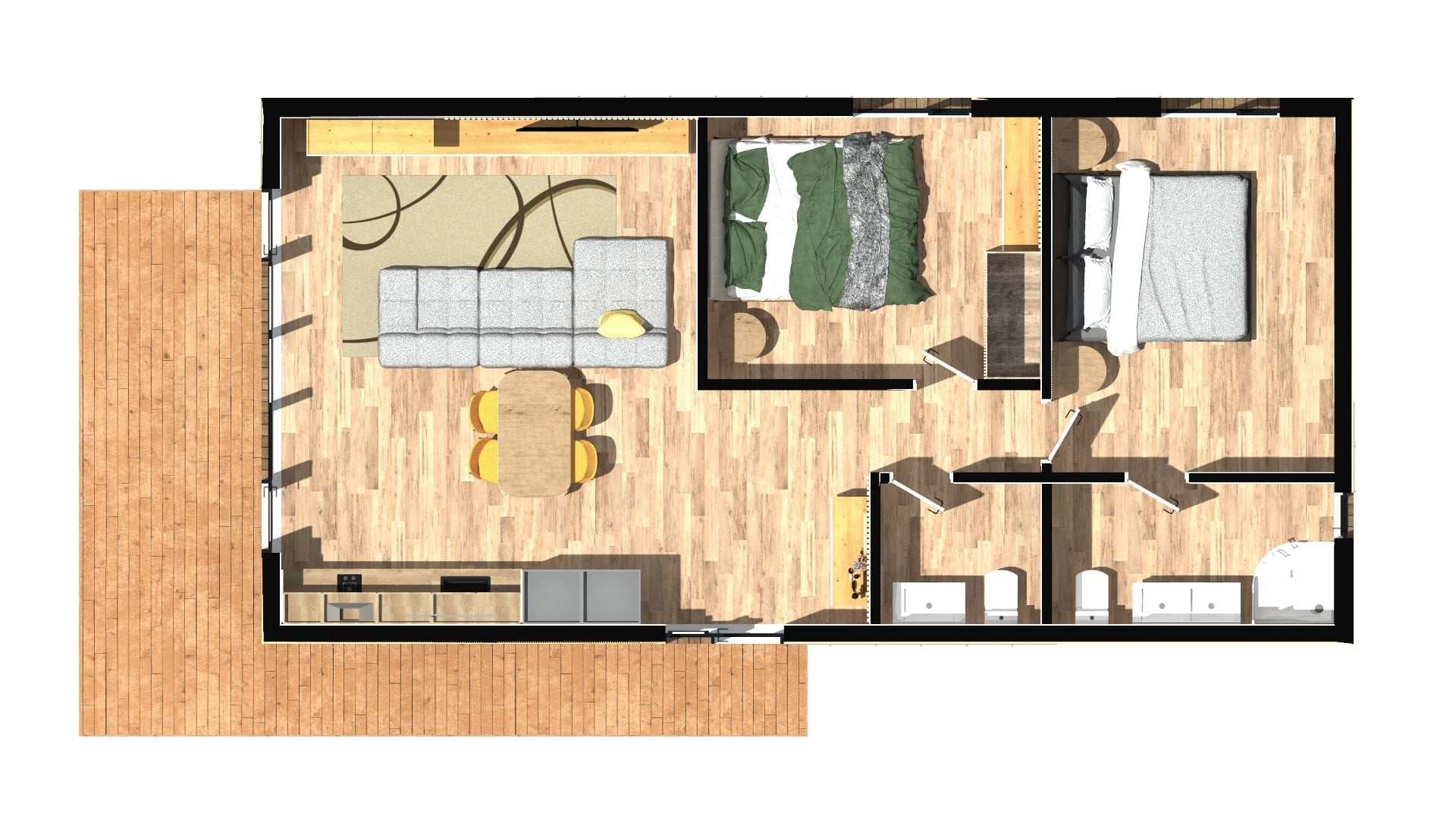 Alla våra moduler kommer med stora skjutdörrspartier för maximalt ljusinsläpp.
